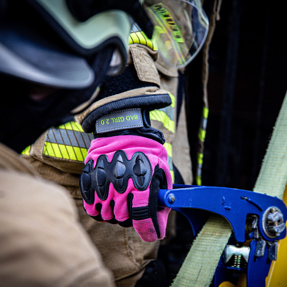 Der BAD GIRL 2.0 ist ein textiler Schutzhandschuh, der speziell für technische Hilfeleistungen entwickelt wurde und hohem Schnittschutz bietet. Mit einer Kombination aus 80% TREVIRA CS® und 20% KEVLAR® in der Innenhand und Fingerschichteln aus 100% KEVLAR® bietet er höchsten Tragekomfort und hervorragende Taktilität. Die Rückhand aus pinkem Spantex® und das Innenfutter aus 60% KEVLAR® und 40% Glasfaser sorgen für zusätzliche Strapazierfähigkeit und Hitzebeständigkeit. Geraffte Abpolsterungen und aufgenähte Protektoren schützen die Fingerknöchel vor Schlägen und Abrieb. Eine Neoprenstulpe mit Klettverschluss gewährleistet sicheren Sitz und zusätzlichen Schutz.