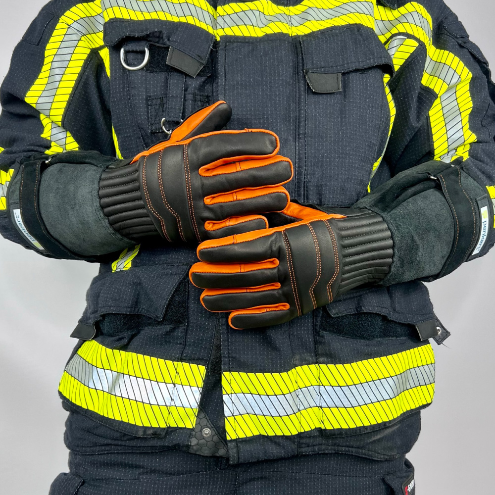 Das Hightech-Tan® Rindleder ist nicht nur extrem strapazierfähig, sondern auch besonders flexibel, was den Tragekomfort erhöht und die Bewegungsfreiheit der Hände nicht einschränkt. Diese Eigenschaften sind besonders wichtig für Feuerwehrleute und Rettungskräfte, die oft in hektischen und gefährlichen Situationen arbeiten müssen. Das Material des Handschuhs sorgt dafür, dass er auch bei intensiver Nutzung und häufigem Kontakt mit hohen Temperaturen und Flammen seine Form und Schutzfunktion behält.
