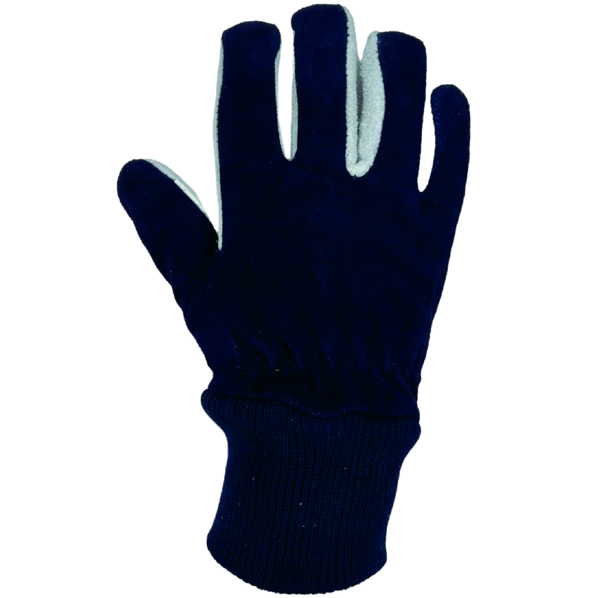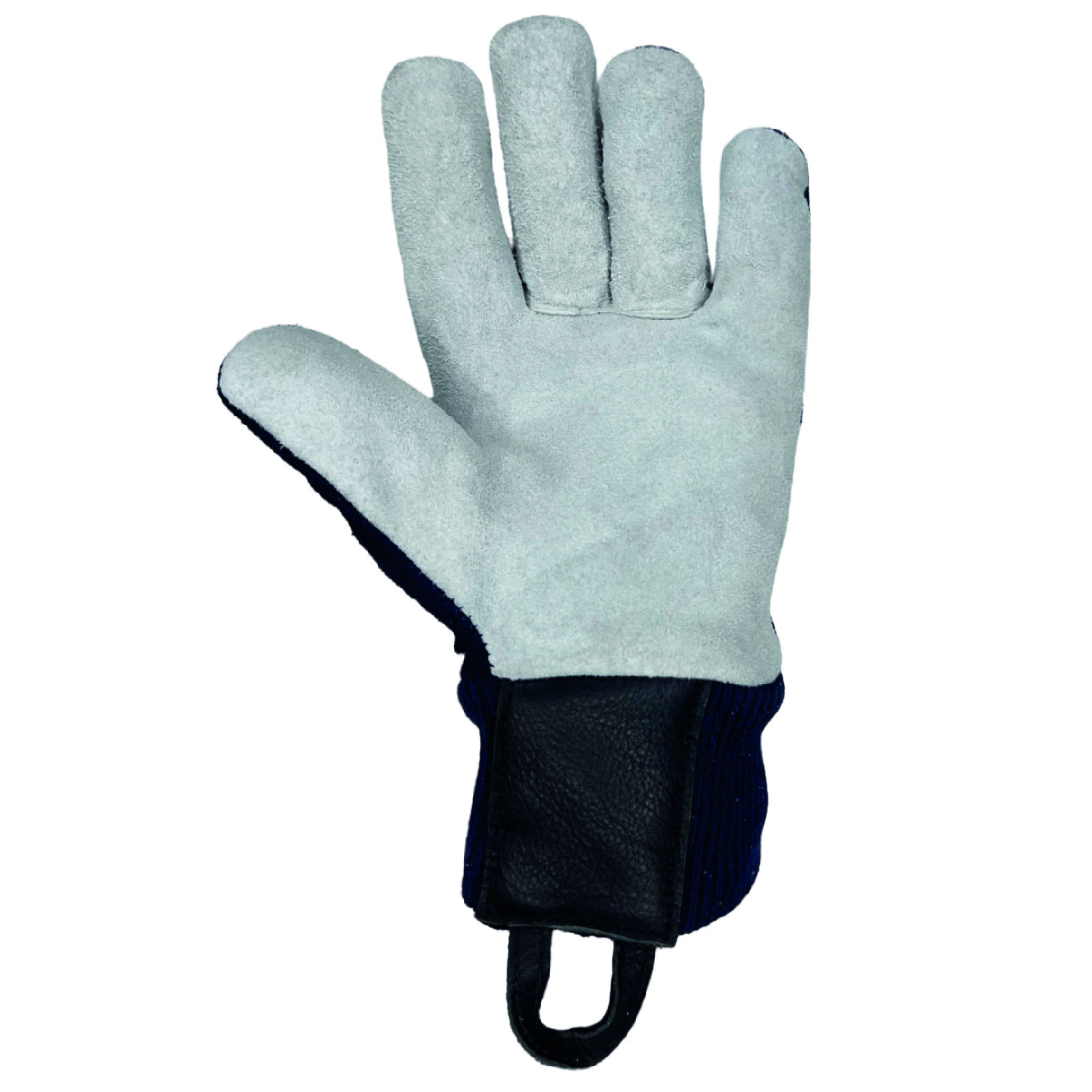 Handrücken aus blauem Rindspaltleder, kompletter Schnittschutz