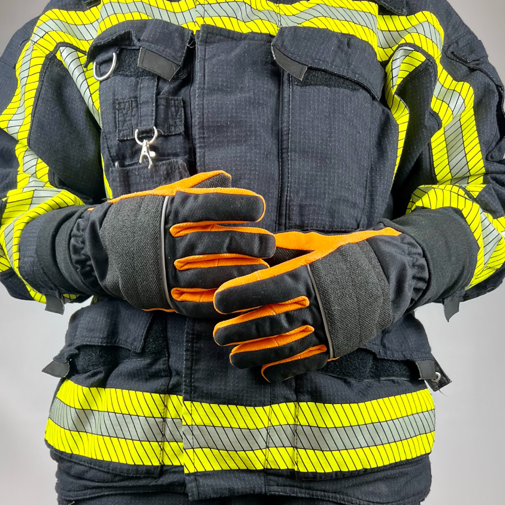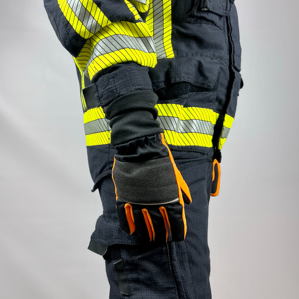 Die kurze Stulpe des Handschuhs ist ebenfalls aus Nomex® gefertigt und bietet zusätzlichen Schutz für das Handgelenk, ohne die Bewegungsfreiheit einzuschränken. Dieser Handschuh vereint hohe Schutzfunktionalität mit Flexibilität und Tragekomfort, was ihn zur idealen Wahl für Feuerwehrleute macht, die unter extremen Bedingungen arbeiten.
